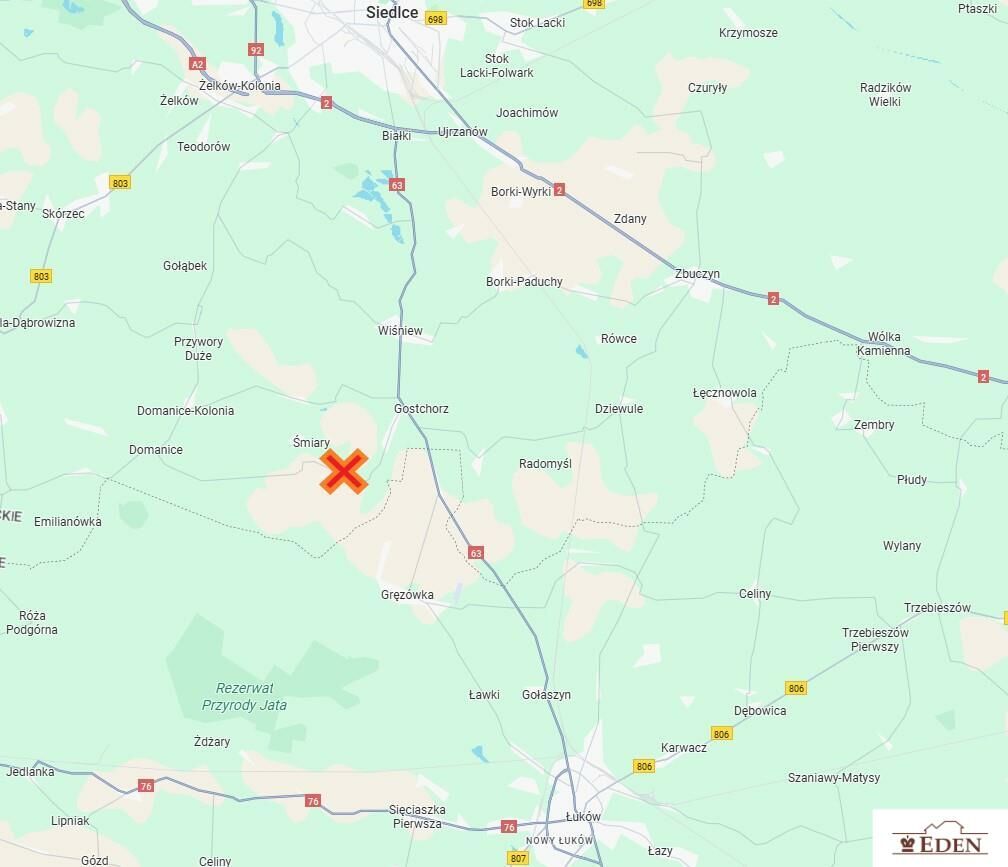 Do Siedlec ok. 18 km, do Łukowa ok. 17 km.